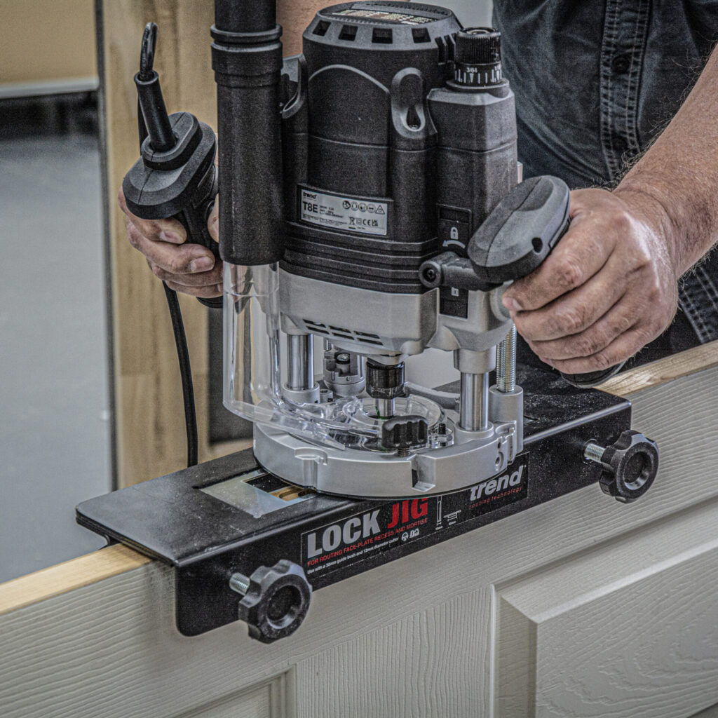 Trend’s jigs are valued for their accuracy and timesaving design. The Pro Worktop Cutting Jigs include patented features that maintain precision in tight spaces, while specialist jigs such as Belfast sink and draining groove models – support professional kitchen installation. For doors, the classic Hinge Jig and the adjustable AnyDoor Jig provide flexible solutions, supported by additional Strike and Lock Jigs for consistent hardware fitting.